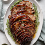 - Assemble the Dish: Brush the glaze generously over the roast, allowing it to settle between the spiral layers.