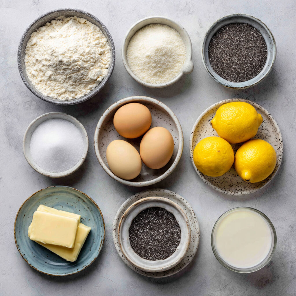 - Combine Ingredients: In a bowl, whisk together flour, baking powder, salt, and poppy seeds. In another bowl, beat butter and sugar until light and fluffy. Add eggs one at a time, then mix in milk, lemon zest, and lemon juice.