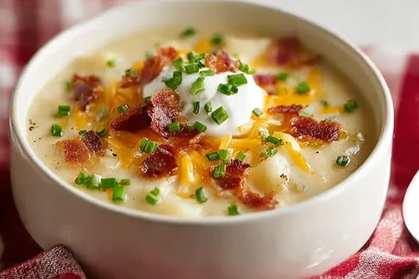 Potato soup has long been a staple in kitchens across Europe and the Americas, thanks to the humble potato’s accessibility and heartiness. In the U.S., the “loaded” version is a playful nod to the classic loaded baked potato, complete with cheese, green onions, and creamy richness. It’s beloved across regions for its warm, stick-to-your-ribs satisfaction and versatility at the table.
