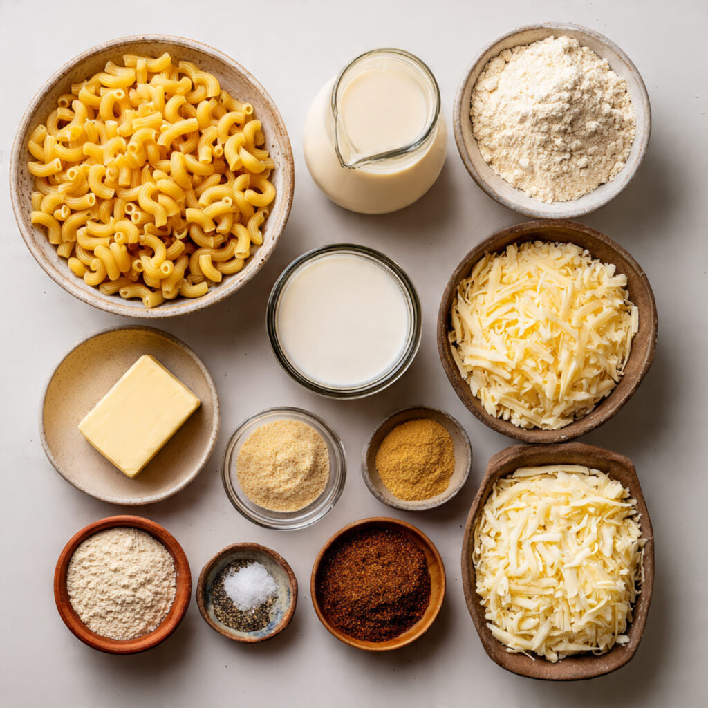 - Mustard Powder (Optional): 1/4 teaspoon – Adds a little tang and enhances the cheese flavor.