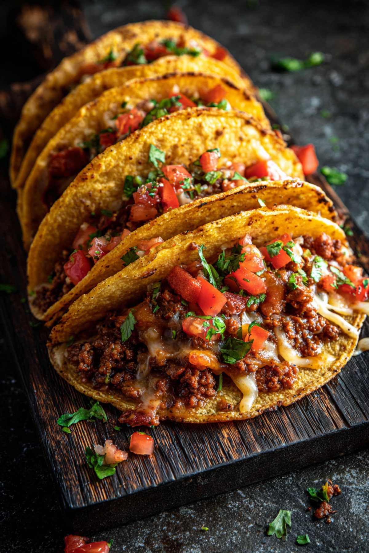 The meat mixture can be made up to 2 days in advance and kept in the fridge. Reheat before assembling. Assembled tacos are best eaten fresh, but leftovers can be reheated in the oven at 350°F for 8–10 minutes to bring back the crisp.