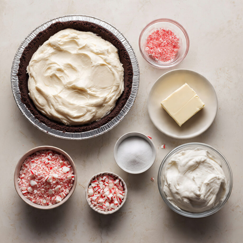 - Chocolate Cookie Crust: 1 pre-made or homemade – A crisp, cocoa base that pairs perfectly with peppermint.