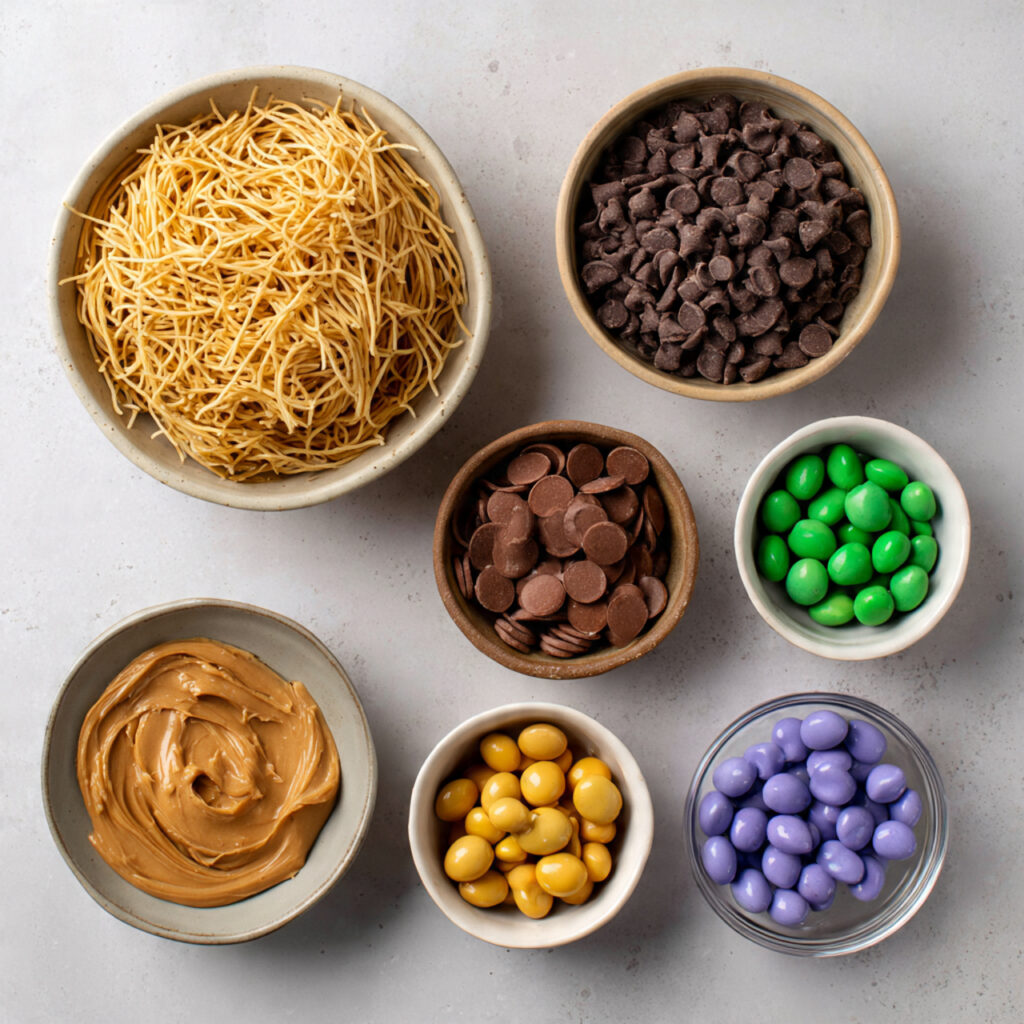 - Mini Candy Eggs: 1 cup, placed in the center of each nest for a festive look.