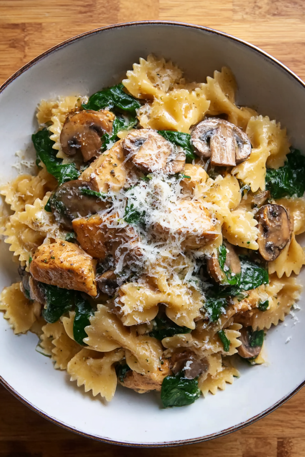 One-pot pasta dishes are beloved around the world for good reason. They’re rooted in convenience but deliver serious flavor. This particular version takes inspiration from classic Italian-American comfort food—creamy sauces, garlic, and mushrooms. The use of farfalle pasta helps capture all that saucy goodness, while fresh spinach adds just enough green to balance the richness. It’s not tied to any one tradition, but it celebrates the spirit of hearty, no-fuss meals shared at the table.