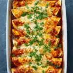 Get ready to fall in love with these Over-the-Border Shrimp Enchiladas — the kind of dish that turns an ordinary evening into something special. Packed with tender shrimp, smothered in a creamy, cheesy, mildly spicy sauce, and baked until bubbly and golden, these enchiladas are bold, comforting, and full of irresistible flavor. Each bite is a perfect balance of creamy and zesty, with warm flour tortillas soaking in every drop of that savory sauce.