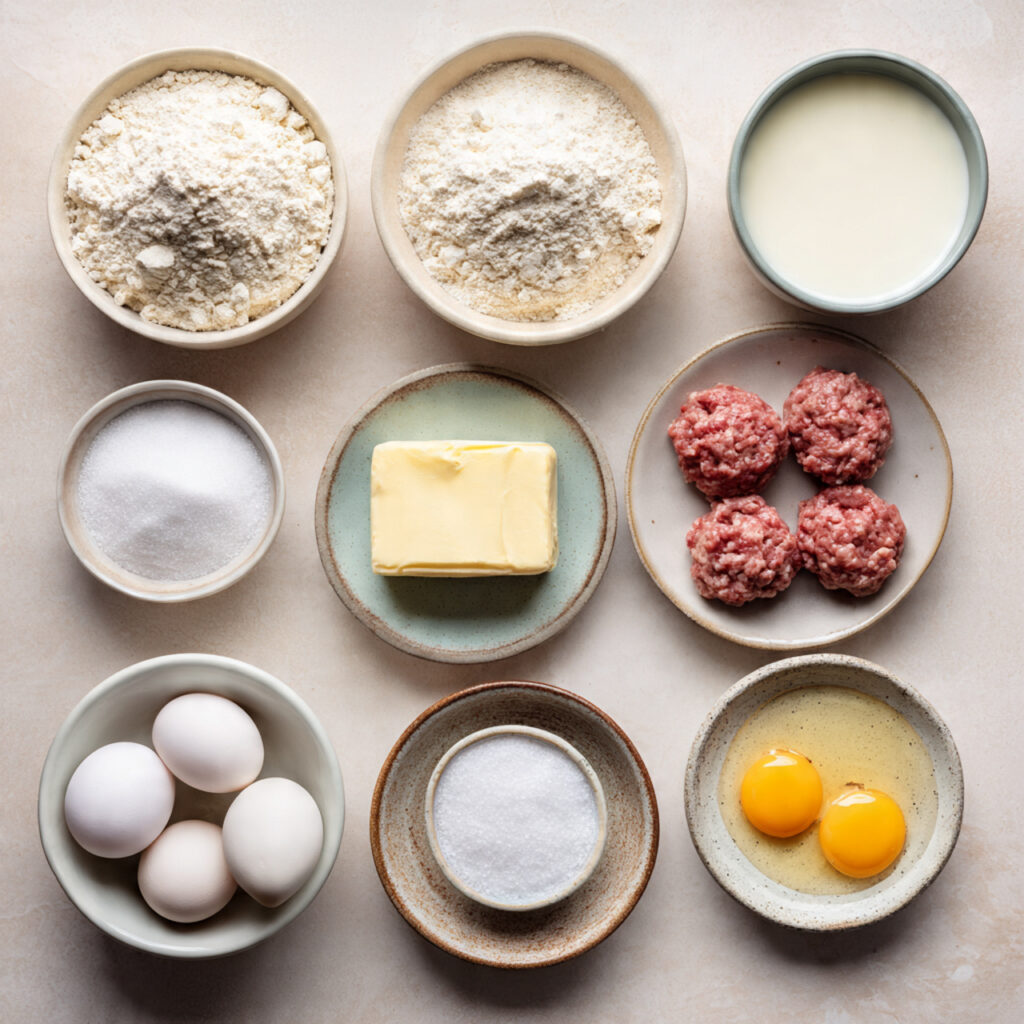 - Assemble the Dish: Add cooked sausage to the baking dish. Pour pancake batter evenly over the sausage.