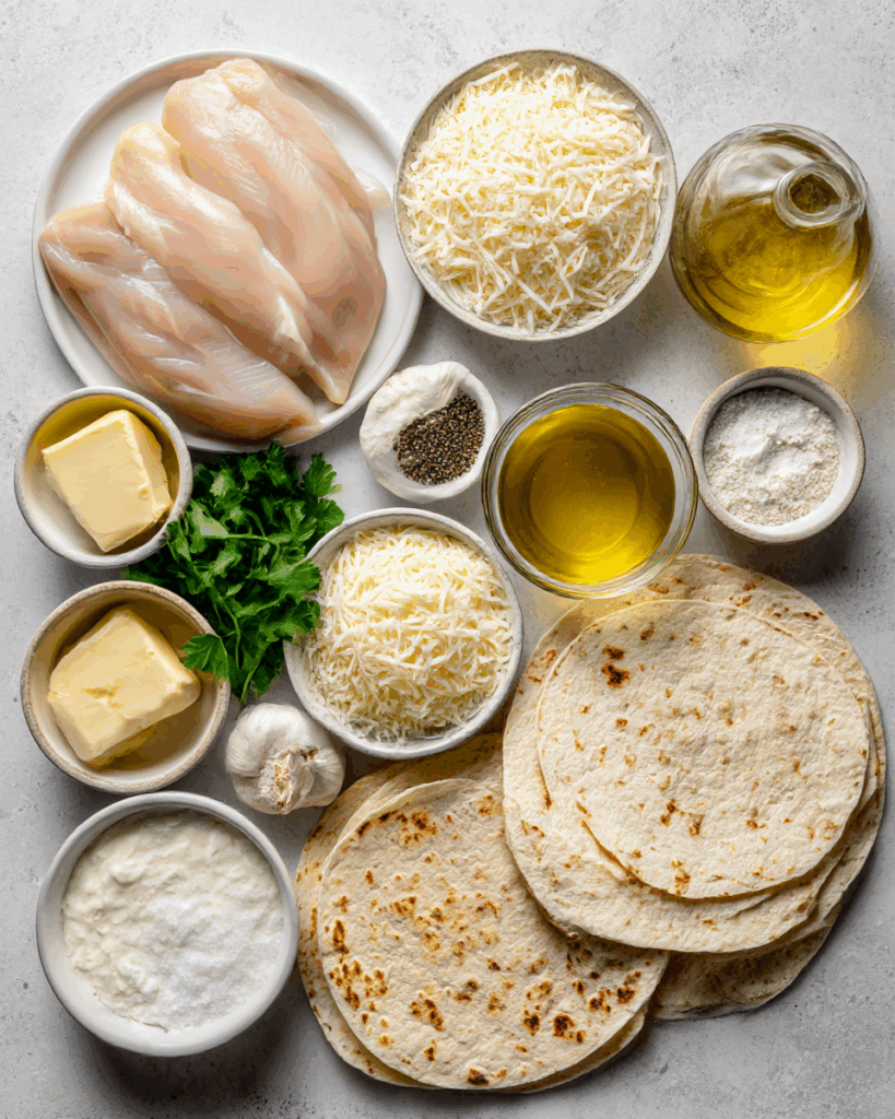 Ingredients in Parmesan Garlic Chicken Burritos