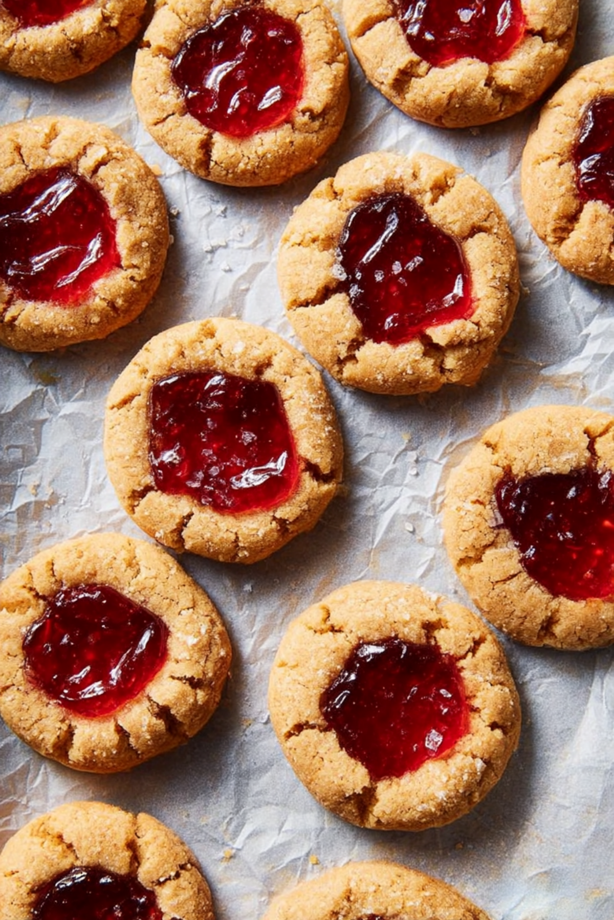 These cookies are chewy at the edges, soft in the center, and have that perfect contrast between salty peanut butter and sweet, sticky jelly. They’re rich, indulgent, and totally satisfying with a cold glass of milk or hot tea.