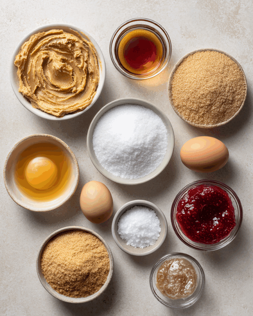 Peanut Butter: This is the backbone of the cookie—go for smooth and shelf-stable (like Jif or Skippy). Natural varieties tend to separate and can make the dough oily or crumbly.