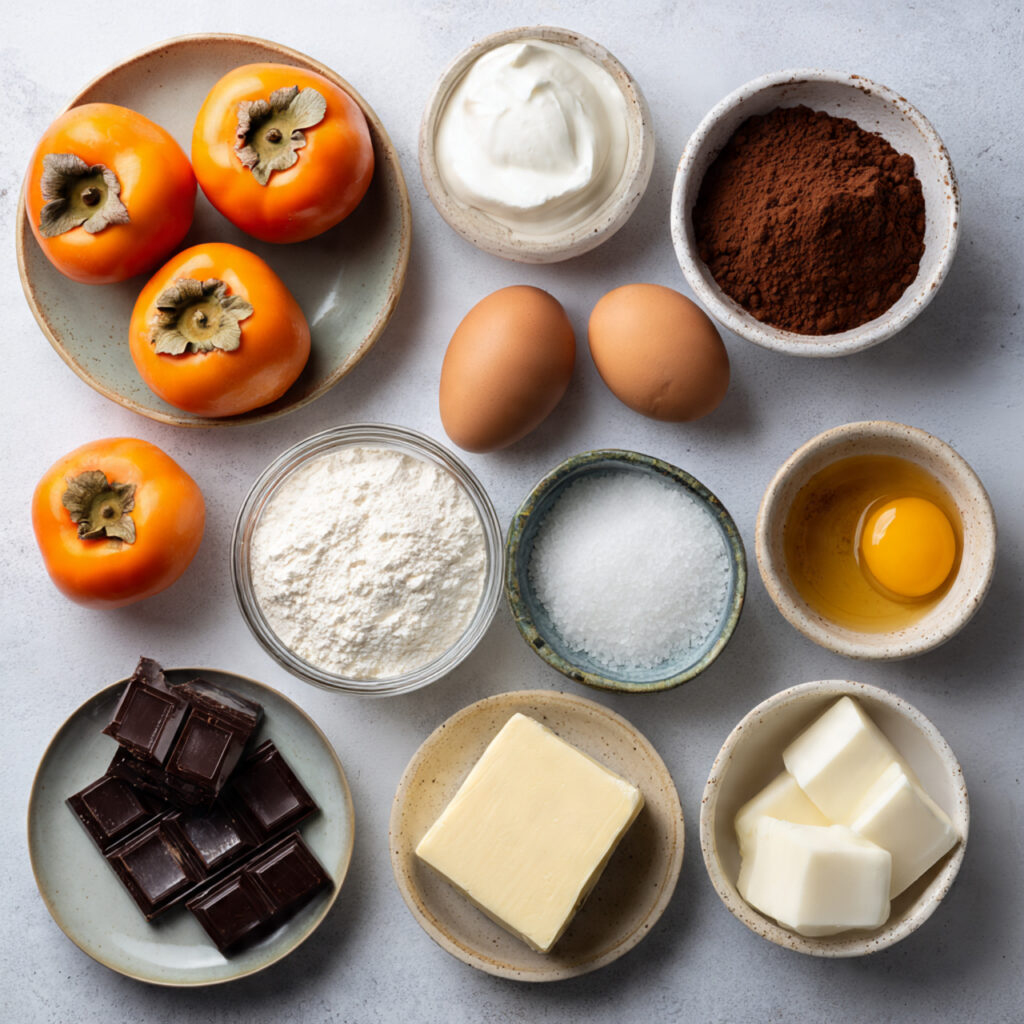 Persimmons, especially the Hachiya variety, have long been used in Japanese and Korean desserts. They’re known for their vibrant orange flesh and custard-like consistency when fully ripe. Combining them with chocolate, though not traditional, is a modern twist that balances their natural sweetness with deep, slightly bitter notes. This fusion-style dessert blends Eastern and Western dessert sensibilities into one luscious spoonful.