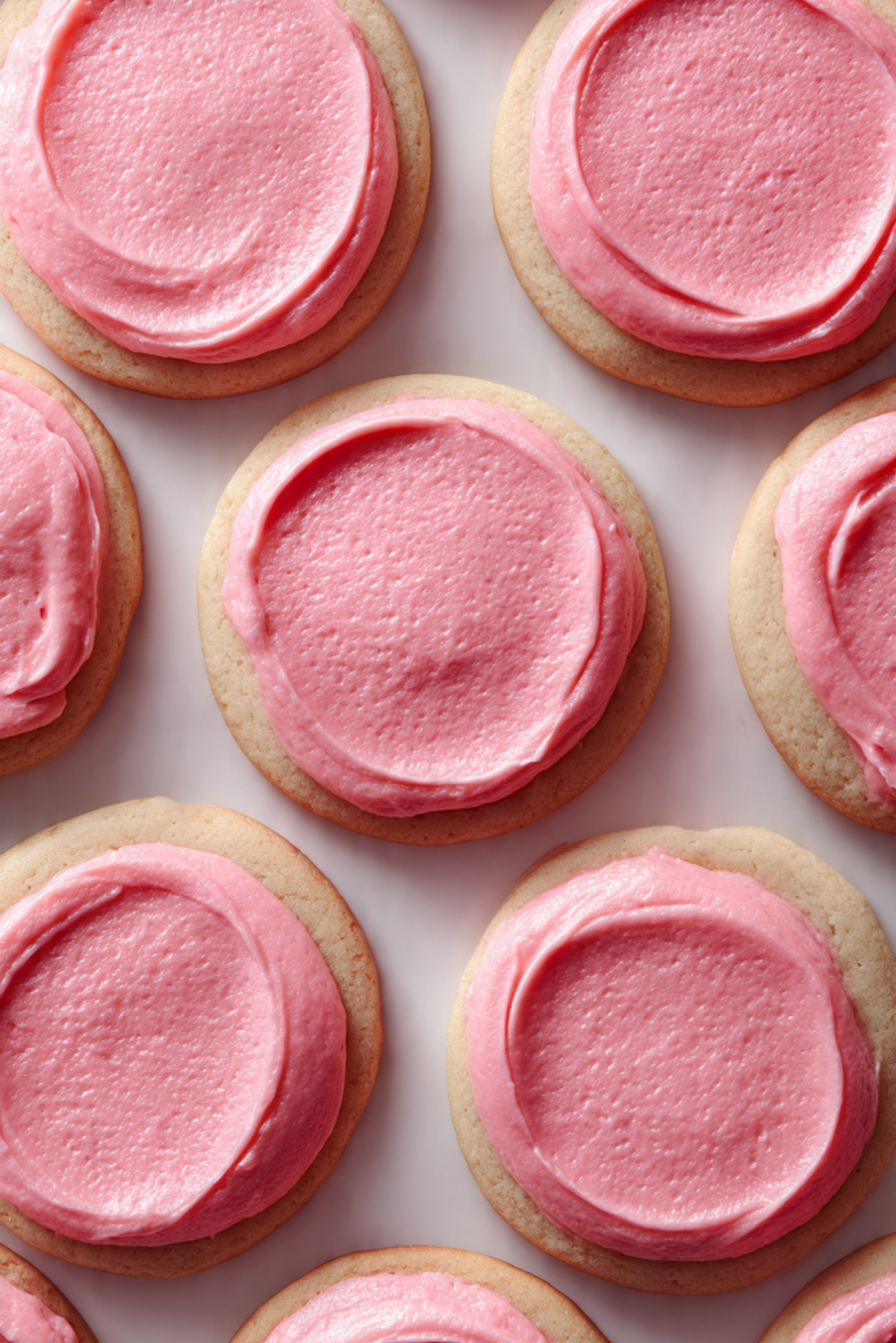 Soft and tender pink sugar cookies topped with creamy frosting, perfect for any occasion.