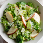 There is something so refreshing about a bowl of crisp broccoli mixed with sweet apples and a creamy dressing that brings everything together. The first bite is always a surprise, crunchy, juicy, slightly sweet, and just creamy enough to make it feel indulgent without being heavy. It is the kind of salad that does not feel like a side dish, it feels like something you actually look forward to. Trust me, you’re going to love this.