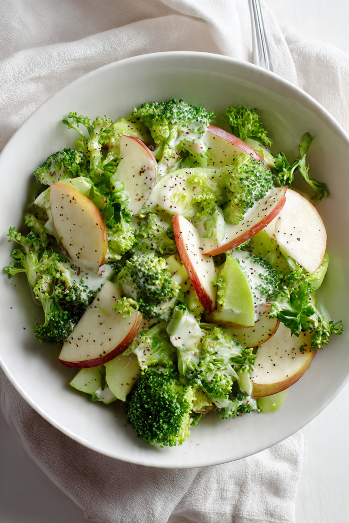 The broccoli stays crisp, the apples are juicy and slightly sweet, and the dressing adds a creamy tang that ties everything together. It is refreshing, balanced, and satisfying.