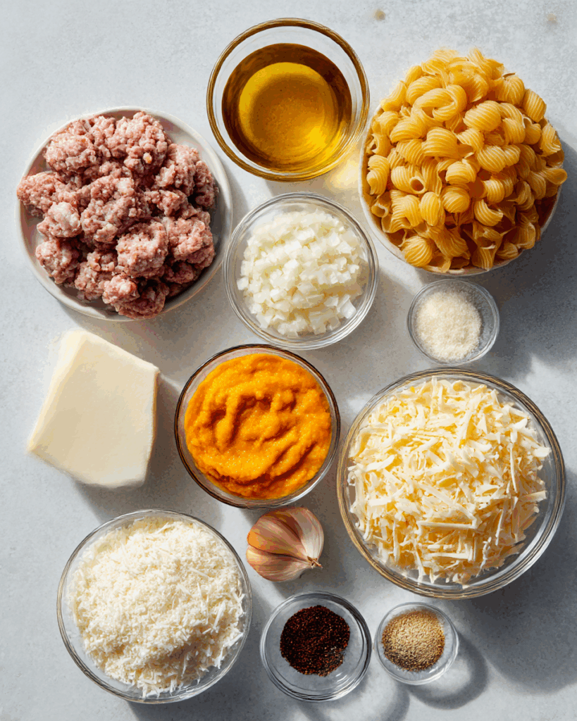 Ingredients in Pumpkin Sausage Mac & Cheese