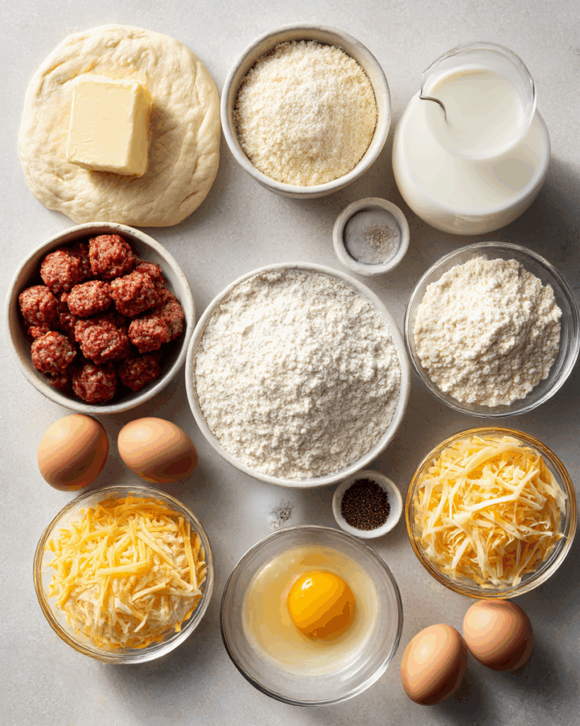 - Combine Ingredients: In a skillet, brown the sausage. Remove and set aside. Melt butter, stir in flour, whisk for 1 minute. Add milk gradually, whisking until thickened. Season and return sausage to pan.