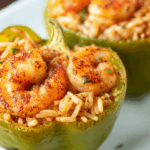 These Shrimp Scampi and Rice Stuffed Roasted Peppers combine tender shrimp sautéed in garlicky lemon butter with fluffy rice and roasted bell peppers. It’s a bright, savory, and colorful dish that’s perfect for dinner parties or weeknight meals.