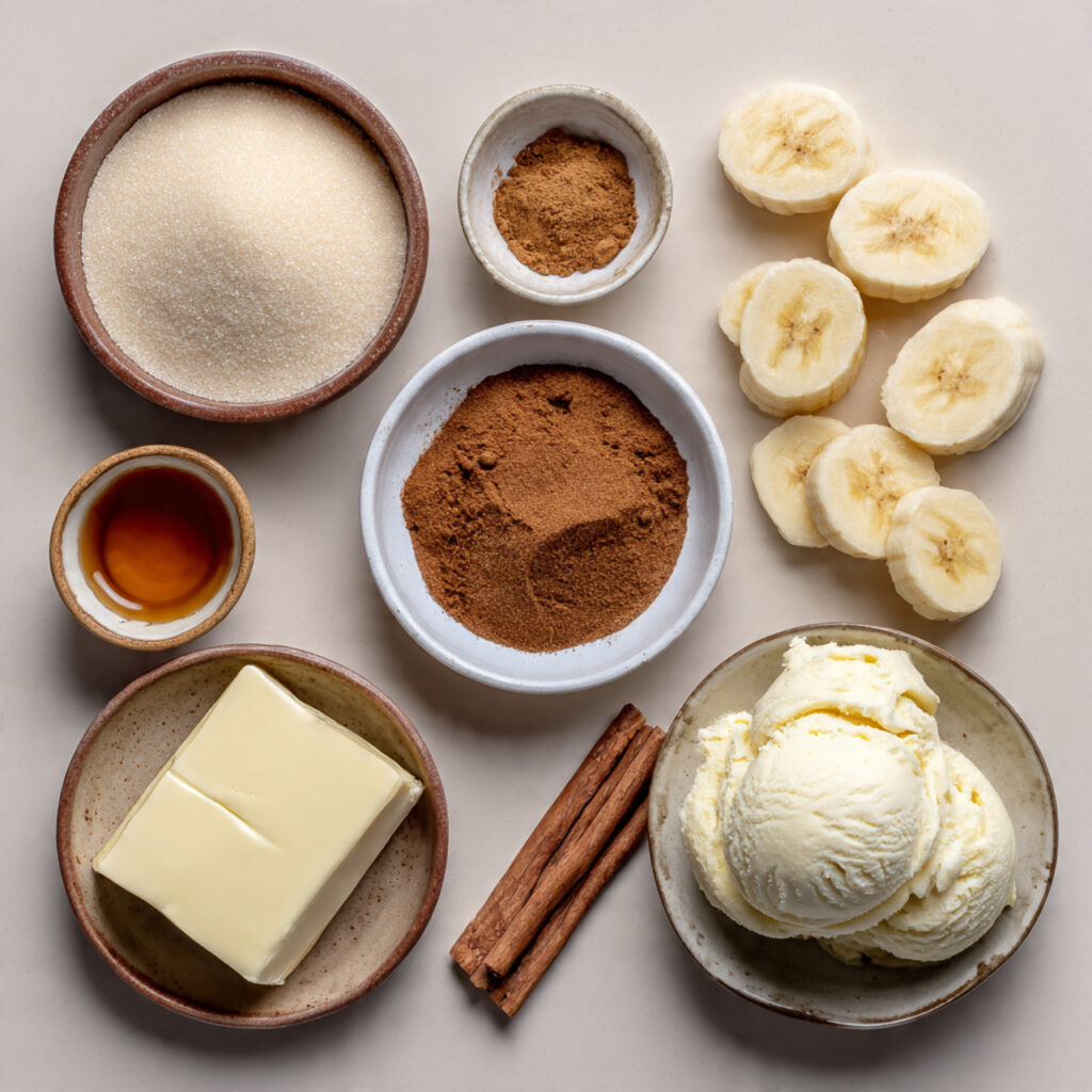 - Vanilla Ice Cream: For serving – The cold, creamy ice cream melts into the warm bananas, creating the perfect contrast in temperature.