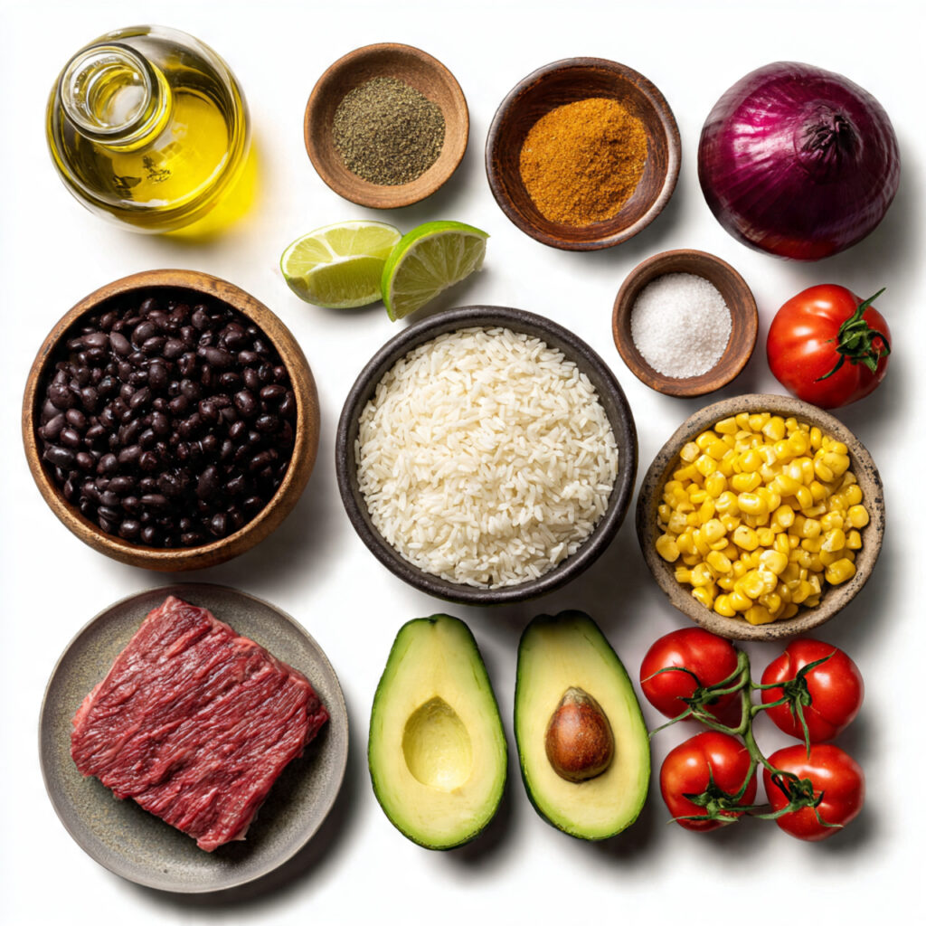 This recipe was born out of my love for hearty bowls that don’t skimp on flavor or freshness. I had some leftover grilled steak from the weekend and wasn’t in the mood for a traditional plate. So, I tossed it over rice, threw in some beans, corn, and avocado, gave it a squeeze of lime, and just like that — a weeknight winner was born. It’s become a go-to dish when I want something fast but still full of soul.