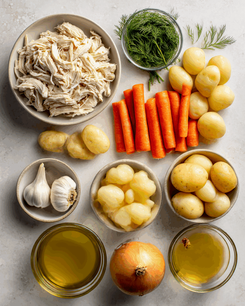Fresh Dill: Not just a garnish — dill adds a grassy, slightly tangy brightness that complements the richness of chicken and broth beautifully.
