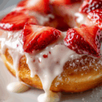 This recipe was born on a lazy Sunday when the dessert craving was strong, and the choice between cheesecake and donuts was just too hard to make. So why not both? Inspired by the classic combination of strawberries and cream cheese, I whipped up a batch of fluffy donuts, topped them with fresh strawberry slices, and drizzled over a thick, sweet cheesecake glaze. The first bite sealed the deal — soft, creamy, fruity, and just indulgent enough to feel like a bakery-worthy creation.