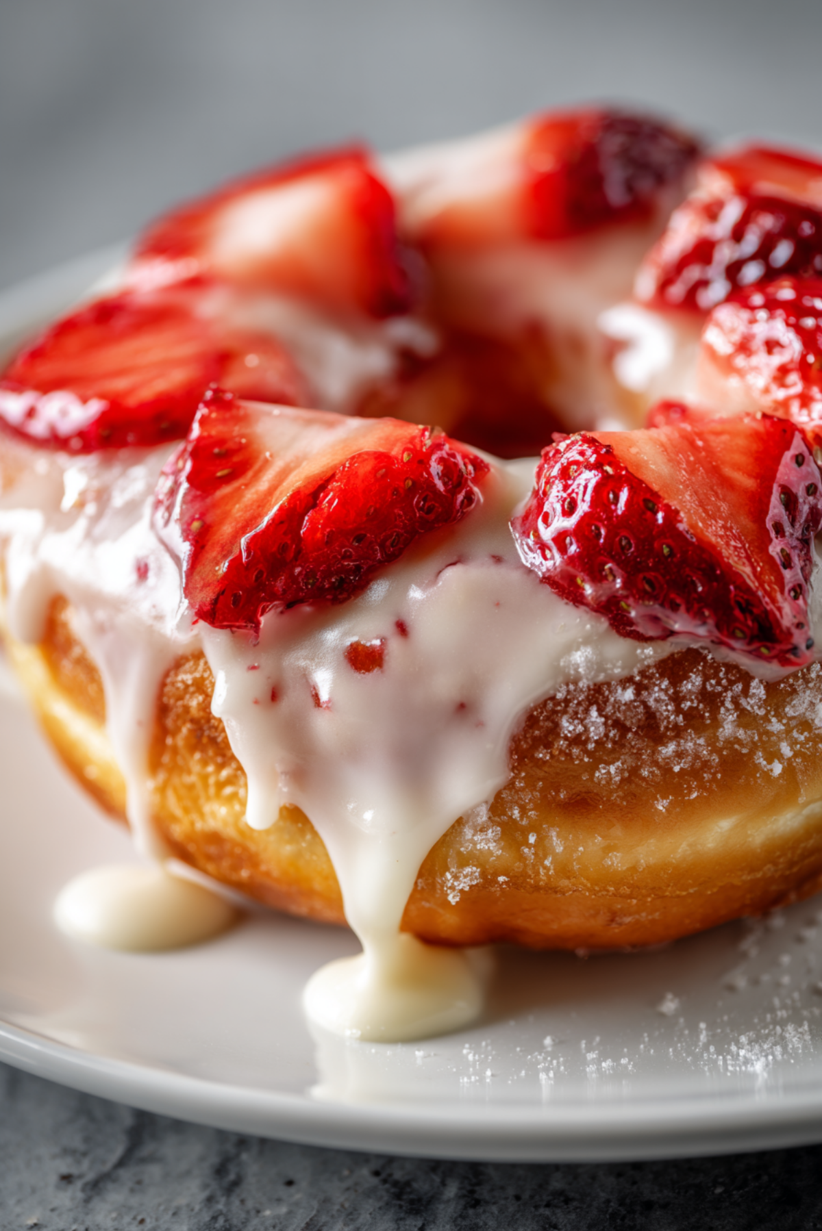 Fresh Strawberries: Their natural sweetness and juicy texture balance the creamy glaze and add a fresh, fruity pop that makes every bite sparkle.