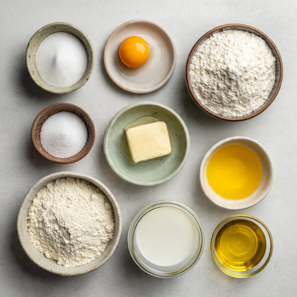 - All-Purpose Flour: 250 g, gives the dough structure and light texture.