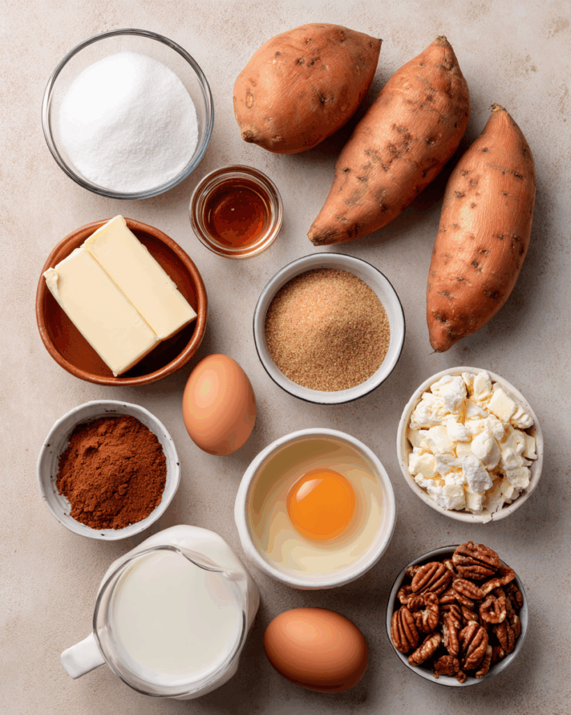 - Sweet Potatoes: 4 cups mashed (about 4 large). Naturally sweet and rich in texture.