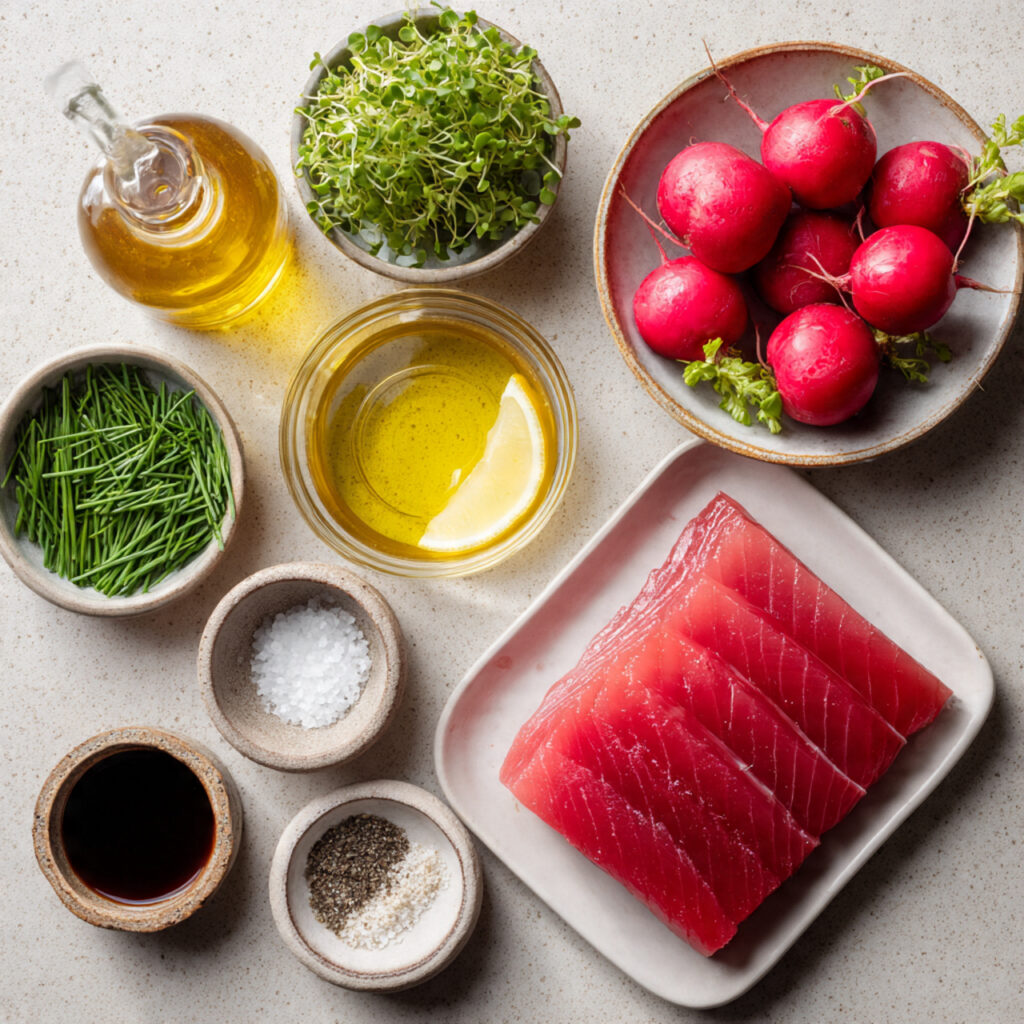 The idea for this tuna crudo came to me while standing at the seafood counter, inspired by the pristine cuts of tuna glistening under the glass. I wanted to create something clean and uncomplicated, something that respected the quality of the fish. This recipe is about balance—between acidity and richness, texture and tenderness—and about letting the tuna shine as the star of the plate.