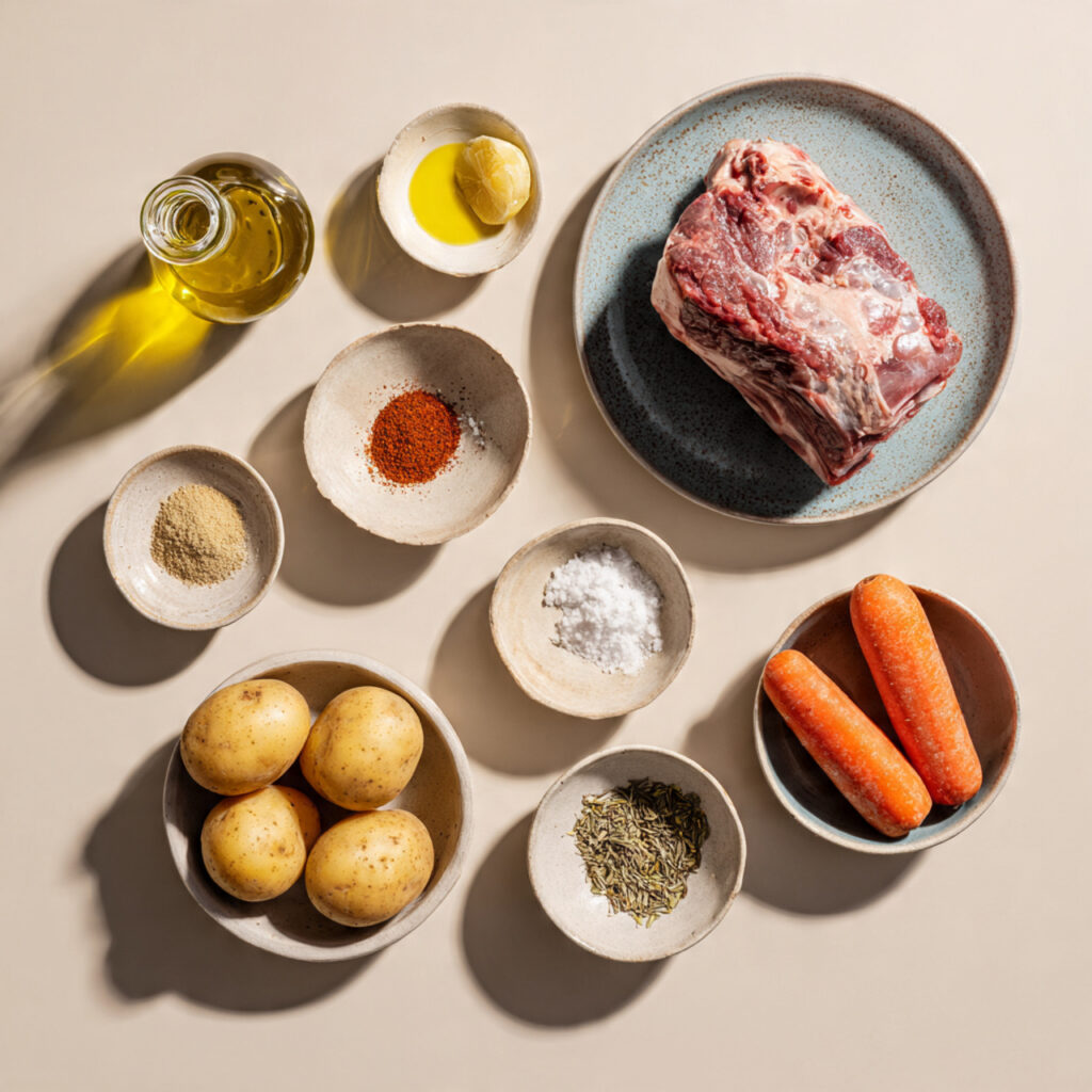 - Lamb Shoulder or Leg: 2 lbs, provides rich flavor and tender texture