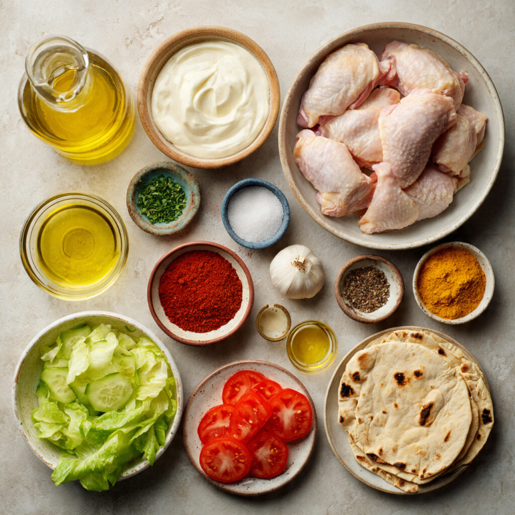 - Garlic Sauce: ½ cup, creamy finishing touch.