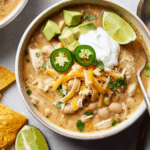 This hearty and comforting White Chicken Chili is packed with tender shredded chicken, creamy white beans, green chiles, and cozy spices, perfect for chilly nights or weeknight dinners.